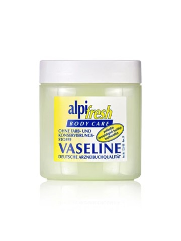 Vaseline van apothekerskwaliteit in 125ml pot. Topkwaliteit voor een klein prijsje! Alpifresh vaseline voldoet aan de voorschriften van de Duitse Farmacopee DAB. Vaseline beschermt, voedt en voorkomt gebarsten huid. Zonder parfum en dermatologisch getest.
