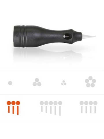 OVER DATUM - 3 punts Naaldmodule voor sloped techniek. Wordt onder meer gebruikt voor eyeliners op het boven ooglid en zorgt voor een uniforme penetratie van de huid.