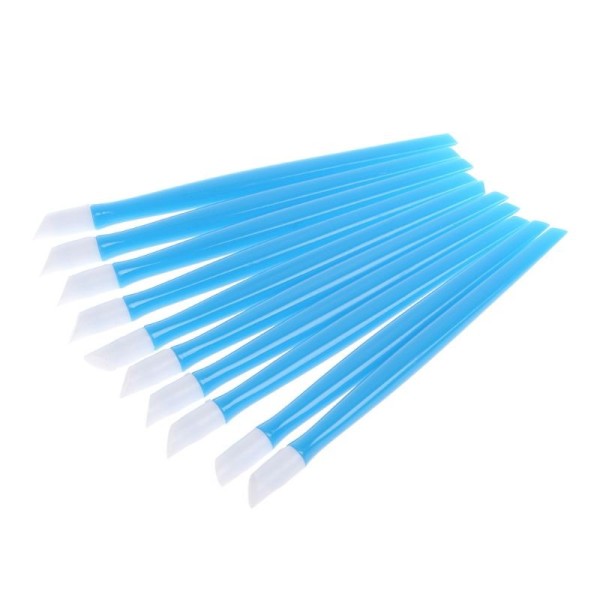 Bokkepoot van plastic met een gummi voor het wegduwen van de nagelriem en voor het verwijderen van velletjes op de nagel.