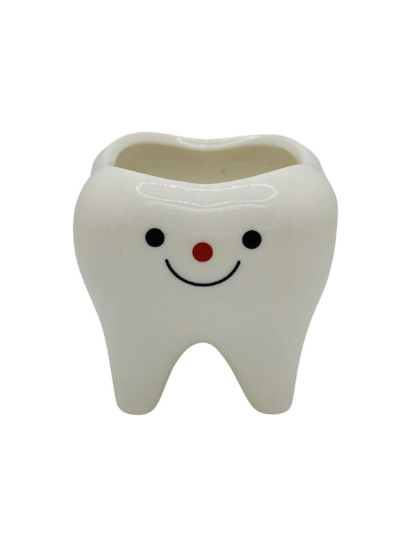 Lachende kies (pot) in de vorm van tand of kies. Deze pot in tandvorm is gemaakt van keramiekachtig materiaal. Hoewel het een leuke kleine cuty is, is de lachende kies geschikt voor planten, kruiden, pennen en ander klein materiaal.