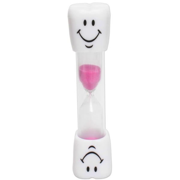 Poetstimer / zandloper met een duur van 3 minuten. Leuk voor in de cadeau mand bij een tandarts praktijk. Natuurlijk ook handig om te gebruiken bij het poetsen, zodat je kinderen lang genoeg poetsen. De buitenkant van de zandloper is gemaakt van plastic, en de binnenkant is gemaakt van glas.