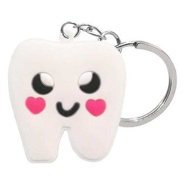 Leuke sleutelhanger in de vorm van tand / kies. Leuk als cadeautje voor in de tandartspraktijk of mondhygiënist. De sleutelhanger is gemaakt van pvc en heeft een metalen ring.