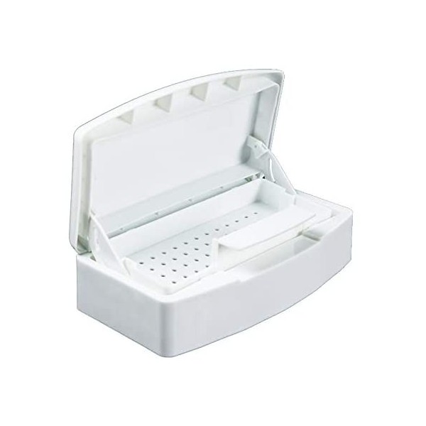 De instrumenten sterilisatie of desinfectie tray bestaat uit een doosje met een bakje waarin een hefsysteem zit, zodat u niet in aanraking komt met de desinfectievloeistof. Ideaal om instrumenten als pincets, nageltangen, schaartjes en freesjes mee te ontsmetten.