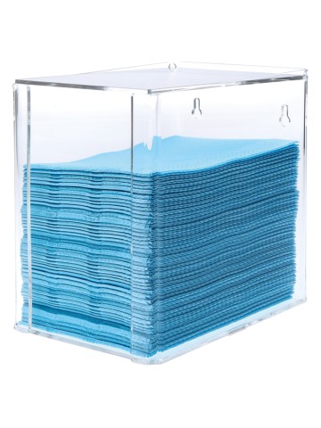 Mooie acryl dental towel of handdoeken dispenser. Handig om towels netjes mee op te bergen en er eenvoudig per stuk weer uit te halen. De dispenser kan zowel staand als hangend gebruikt worden.