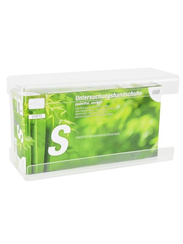 Handschoenen dispenser van draadmateriaal. Zorgt er voor dat alles binnen handbereik te pakken is, goed opgeborgen is en niet ergens staat te verfstoffen. Orde en reinheid.