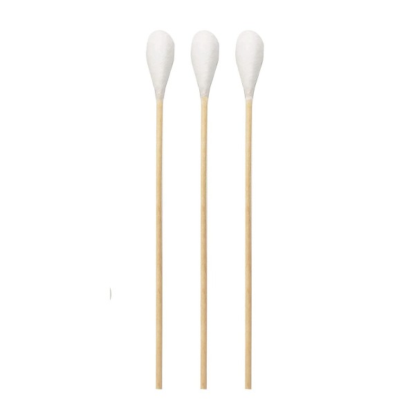 De wattenstaafjes van 15cm. met een extra lange houten staafje zijn uitstekend geschikt voor het uitvoeren van cosmetische behandelingen. Met zijn grote kop neemt hij snel vocht op of kun je een groter oppervlak bewerken.