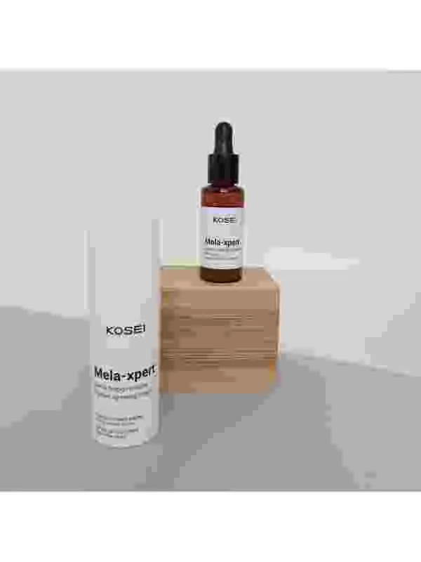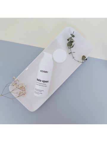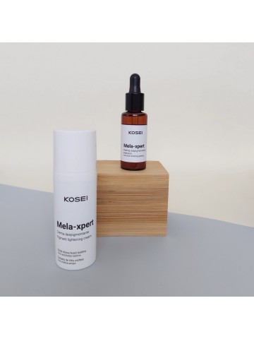 3º Breng Mela-xpert corrector 's morgens en' s avonds aan op een schone huid (gezicht, hals, decolleté, handrug...) door zachtjes te masseren tot het volledig is opgenomen, waarbij de oogcontouren worden vermeden. Als blootstelling aan de zon wordt verwacht, zelfs voor een korte wandeling in de schaduw, raden we aan om HELIOKOS anti-age gezichtszonnecrème FP50 over Mela-xpert anti-smet corrector aan te brengen.