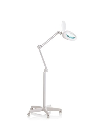 Ronde grote loupelamp met 90 LED verlichting op statief. Regelbare lichtintensiteit ( 3 standen). Energiezuinig. Deze loupelamp wordt niet warm en geeft geen schaduwen. Bevat een 3 dioptrie lens die wordt beschermd door een beschermkap.