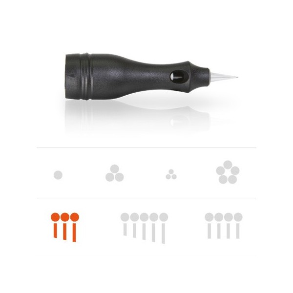 OVER DATUM - 3 punts Naaldmodule voor sloped techniek. Wordt onder meer gebruikt voor eyeliners op het boven ooglid en zorgt voor een uniforme penetratie van de huid.
