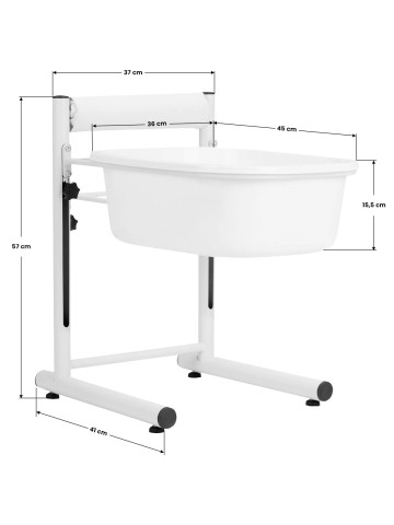 Het verstelbare pedicure voetenbad verlicht de pedicurebehandeling doordat het voetenbadje in hoogte verstelbaar is. Daarnaast wordt de behandeling extra comfortabel voor de klant, omdat de hoogte exact bepaald kan worden, maar ook vanwege het zachte materiaal an de chterkant van het frame. Kortom, comfort en gemak voor zowel klant als behandelaar.