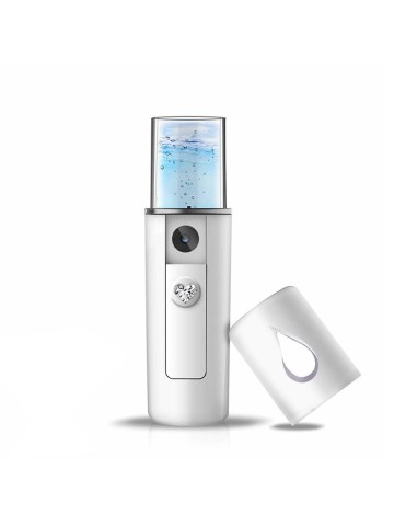 Nanomister met vochtmeter om het vochtpercentage in de huid te meten. De nanomister breekt waterdeeltjes af tot een fijne nevel met behulp van nanotechnologie.