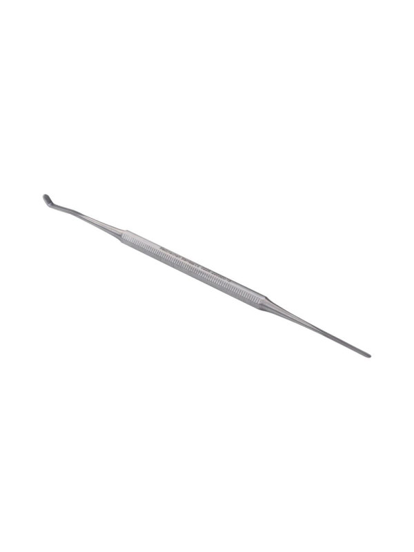 De 15 cm lange RVS nagelheffer met zowel een rechte als een gebogen zijde is een essentieel dubbelzijdig instrument voor pedicureprofessionals. Dit veelzijdige gereedschap dient niet alleen als nagelheffer om nagels veilig op te lichten, maar ook als palpator voor het identificeren van gevoelige plekken en drukpunten, zoals eelt.