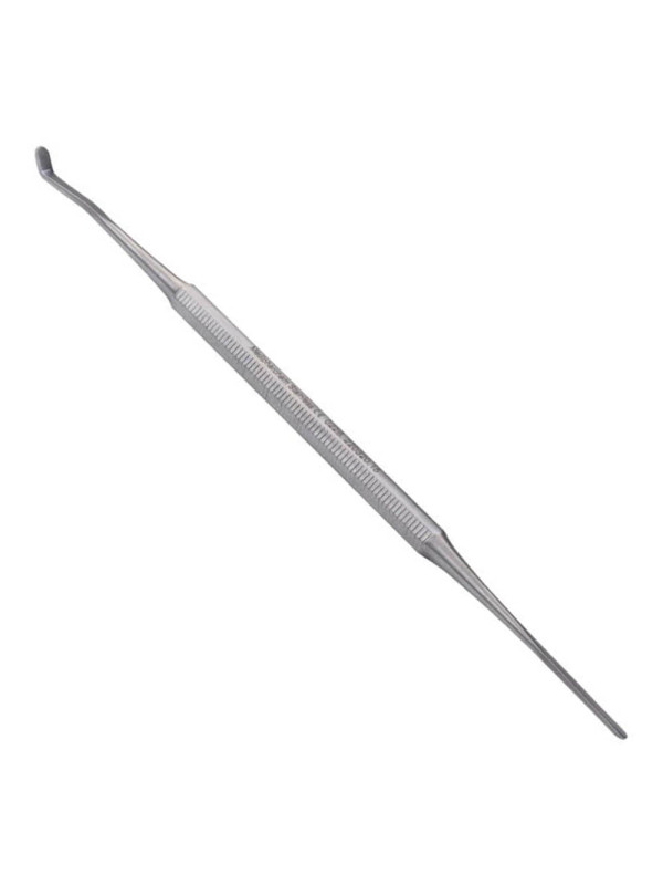 De 15 cm lange RVS nagelheffer met zowel een rechte als een gebogen zijde is een essentieel dubbelzijdig instrument voor pedicureprofessionals. Dit veelzijdige gereedschap dient niet alleen als nagelheffer om nagels veilig op te lichten, maar ook als palpator voor het identificeren van gevoelige plekken en drukpunten, zoals eelt. Vervaardigd uit hoogwaardig roestvrijstaal, biedt het duurzaamheid en precisie in nagelverzorging en diagnose.