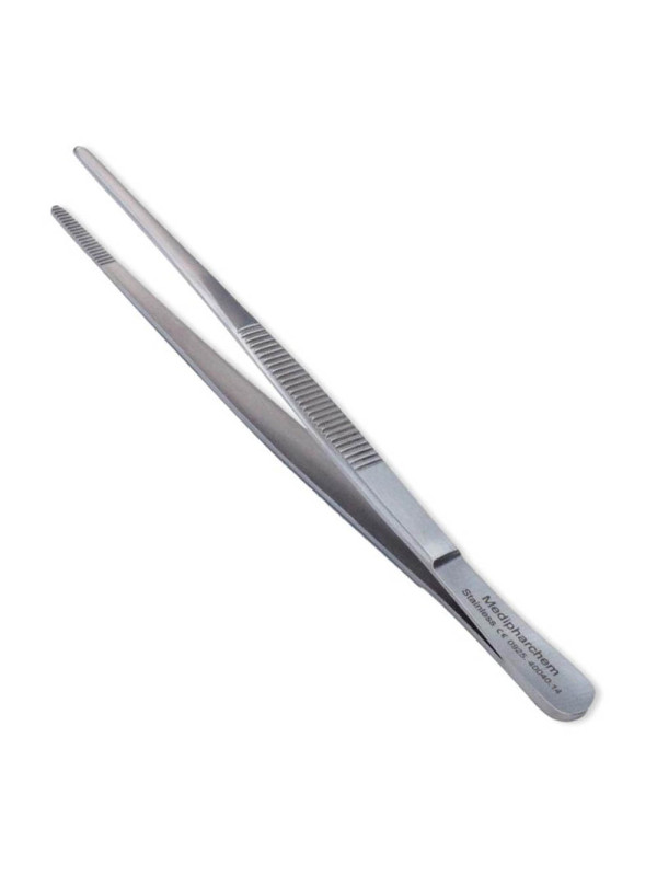 De wattenpincet van 14 cm met een recht design is een essentieel instrument en ontworpen voor precisie en gebruiksgemak, is ideaal voor het hanteren van watten en andere kleine materialen tijdens medische procedures of persoonlijke verzorging.