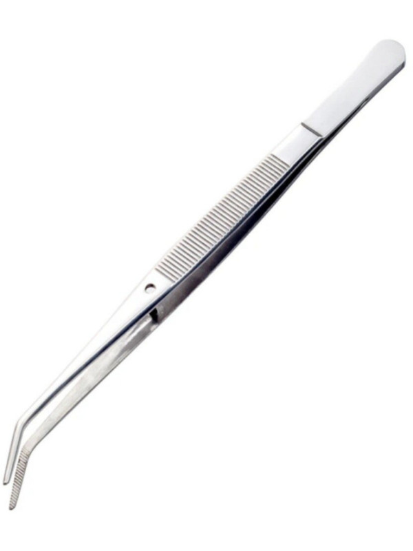 De pincet van 15.8cm met een gebogen design is een essentieel instrument en ontworpen voor precisie en gebruiksgemak, is ideaal voor het hanteren van watten en andere kleine materialen tijdens medische procedures of persoonlijke verzorging.