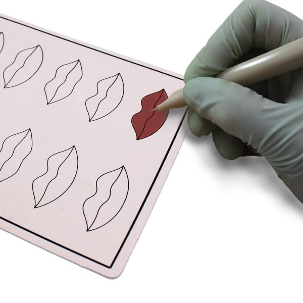 Oefenhuid voor het zetten van permanent make-up voor de lippen.