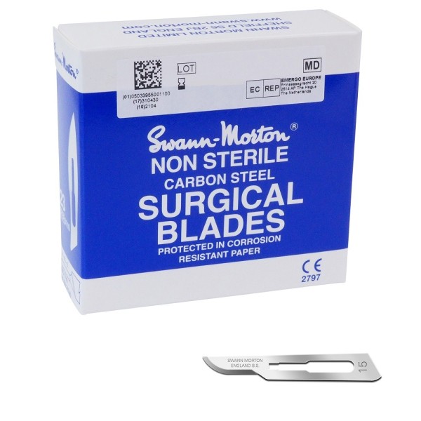 Swann Morton pedicure mesjes nummer 15 - niet steriel. In de pedicuresalon worden deze messen het meest gebruikt om eelt te verwijderen van de voet of enkel. Bij een pedicurebehandeling wil je eelt vlot en vloeiend kunnen verwijderen en met Swann Morton scalpels gaat dit eenvoudig door de hoge kwaliteit. Het mesje is geslepen langs de kleine gebogen rand en zorgt zo voor soepel verwijderen van eelt aan de enkel of de voet. Maak voetverzorging eenvoudig. De mesjes zijn gemaakt van carbon staal. De scalpelmesjes van Swann Morton zijn de meest gebruikte in de medische wereld.