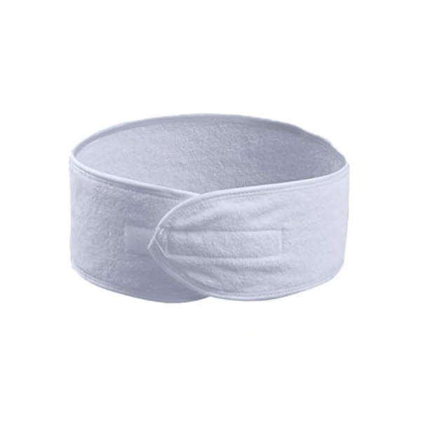 Haarband in elastische badstof met velcrosluiting. Verpakt per stuk.