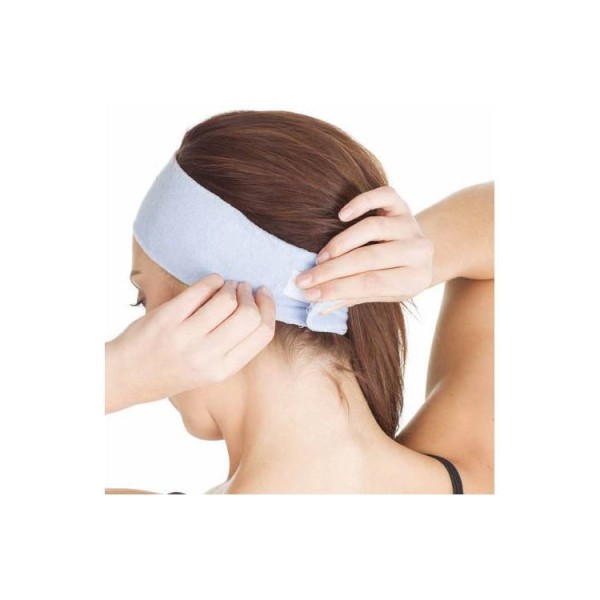 Haarband in elastische badstof met velcrosluiting. Verpakt per stuk.
