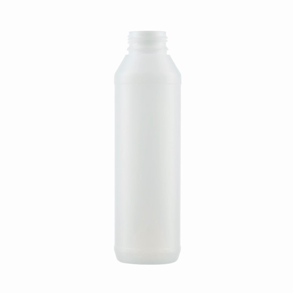 Semi-transparante fles voor het bewaren van vloeistoffen. Inclusief witte dop.