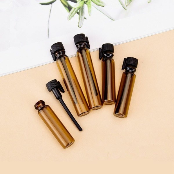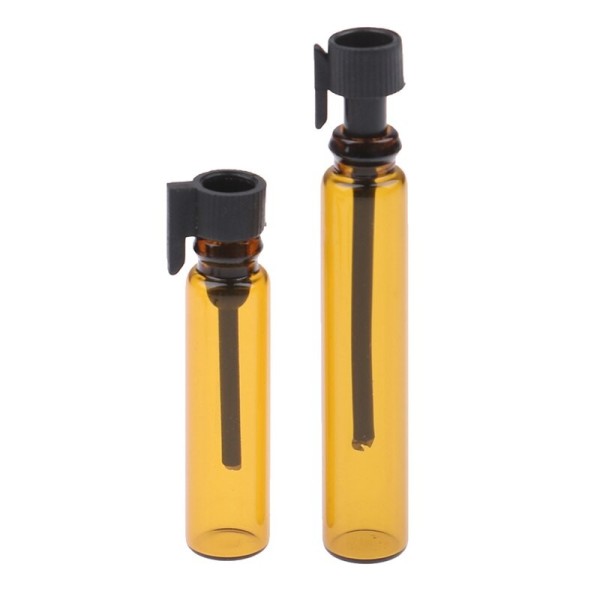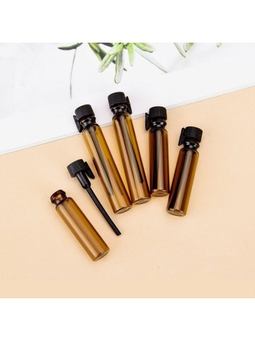 Lege parfum sample flesjes van 1ml inclusief sluitdop met daaraan een geurstokje. De flesjes worden verpakt per 10 stuks en zijn gemaakt van bruin glas. Handig om mee te nemen op reis of om je klanten een sample te geven van de geurtjes uit je tapparfum tap. Vooral de bruine zijn ook geschikt voor etherische olie.